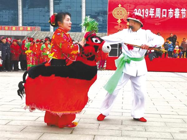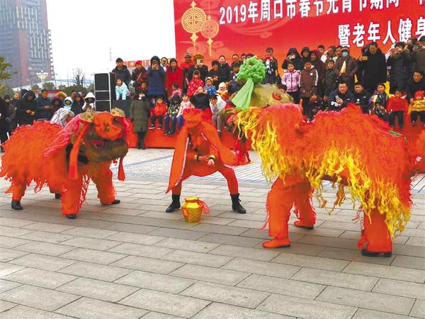 本报讯 2月12日上午,周口市2019年“欢乐进万家”春节文化活动之一民俗趣味体育活动暨老年人健身系列展示交流活动在市体育中心精彩“开锣”,来自我市的10支民俗表演队和300多位群众文艺爱好者为市民带来一场极具特色的文化盛宴。
