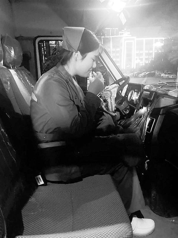 2月16日晚,我市元宵灯会正式拉开帷幕。为保障本次活动顺利进行,我市派出多个医疗保障小组,守护在各个灯会活动现场。图为守护在川汇区文化广场的周口市人民医院急诊科医生何云慧正吃方便面充饥。