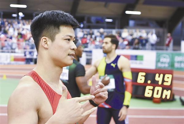 “第一步蹬出去的时候就感觉自己没有什么优势,60米是一个非常短的项目,一旦起跑没跑好,后面很难创造好成绩。”苏炳添说,“不过,整体跑的节奏和后程20米是这3场比赛中跑得最好的。”