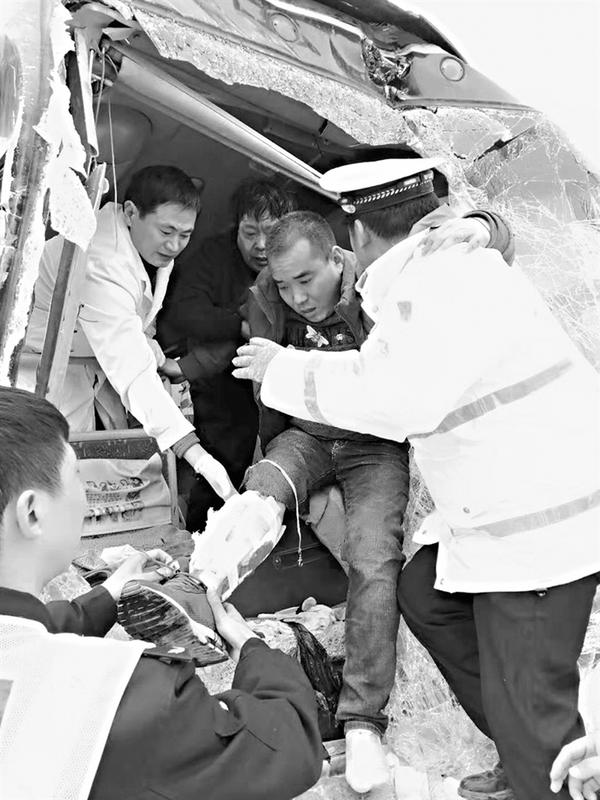 本报讯 2月23日,一辆大巴车和一辆货车在大广高速周口辖区发生碰撞,事故造成3人受伤。市公安局交通管理支队高速二大队扶沟中队民警到达现场后,及时将受困的大巴车司机救出,并将散落的货物转移到安全位置。