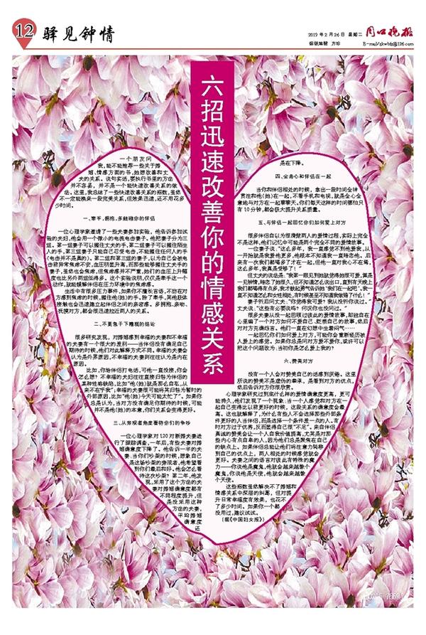 一个朋友问我,能不能推荐一些关于婚姻、情感方面的书,她想改善和丈夫的关系。说句实话,要执行书里的方法并不容易,并不是一个能快速改善关系的做法。这里,我总结了一些快速改善关系的招数,虽然不一定能换来一段完美关系,但效果迅速,还不用花多少时间。