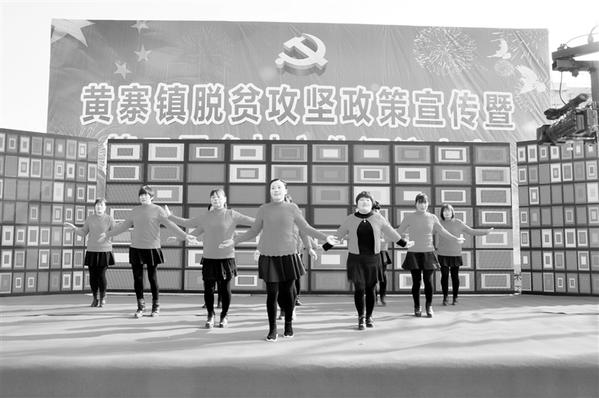 今年以来,商水县在脱贫攻坚政策宣传上花心思、创新意,采用群众喜闻乐见的戏曲、小品、舞蹈等开展寓教于乐宣传,丰富群众的精神文化生活,把党的声音传递给基层广大群众。图为近日黄寨镇利用文艺汇演宣传脱贫攻坚政策。 记者付永奇 摄