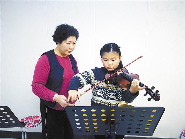 61岁的李影,12岁开始学习小提琴,14岁登台独奏,从事音乐教育几十年,为本地音乐教育改革作出了贡献。退休后,她一直心系音乐教育,应周口文昌小学少年文化宫邀请,义务当了一名小提琴辅导教师。把规范的小提琴演奏技艺精心传授给学生,让学生在艺术学习的道路上不走弯路,是她孜孜不倦为之付出的动力!图为李影在辅导学生拉小提琴。记者 孙安平 摄