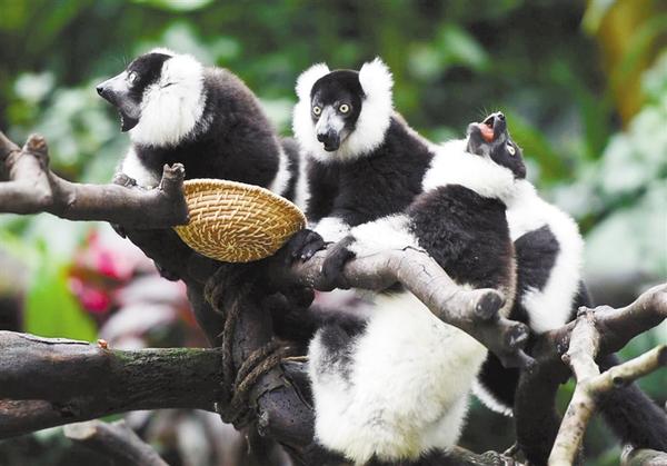 当日,广州长隆野生动物世界成功繁育的我国首例斑狐猴三胞胎正式与游客见面。出生以来,经过10个月的专业呵护,这三只雄性斑狐猴平均体重由出生时的100克增长到2400克左右。