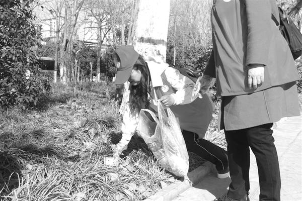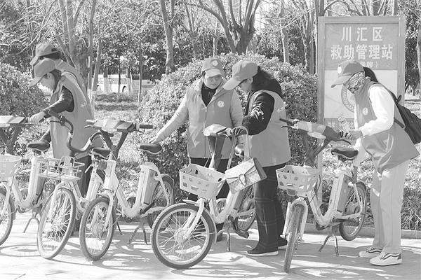 在巡访中,志愿者坚持以身作则,将地上散落的垃圾捡起来放到垃圾箱里,把没有摆放整齐的共享单车摆放好。