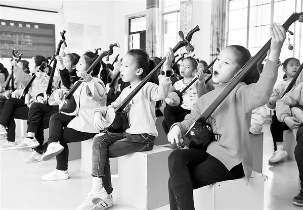 广西龙州县龙州镇新华中心小学2006年联合县文化馆共同创建天琴社团,吸引了不少学生参与。目前,龙州县当地已有10多所学校建成了天琴培训活动基地。
