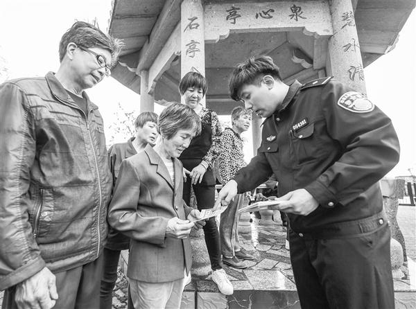 4月9日,东林派出所民警在泉心村向群众发放“扫黑除恶”宣传资料。
