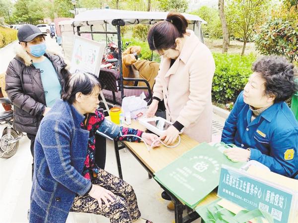 近日,周口市疾病预防控制中心人民路社区卫生服务中心组建3个家庭医生团队,到文明社区、颍河社区、人民路社区开展家庭医生签约服务宣传活动。 为提高基本公共卫生慢性病规范管理率,更好管理辖区内高血压、糖尿病慢病患者及65岁以上(含65岁)老年人等重点人群的医疗服务工作,人民路社区卫生服务中心家庭医生团队通过发放健康宣传资料等方式,提高了居民到随访点参与随访服务工作的积极性。图为工作人员在人民路社区服务点为居民测量血压。通讯员 孔博仟 摄