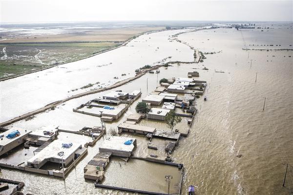 这是当地时间4月9日在伊朗胡齐斯坦省拍摄的被洪水淹没的村庄。