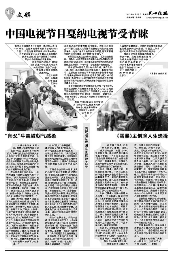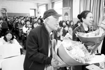 本报综合消息 4月9日, 湖南卫视综艺节目《我们的师父》主创和第一期的“师父”牛犇老师走进中国传媒大学与学生们进行了面对面交流(上图)。84岁高龄的“师父”牛犇表示,社会上对年轻演员的评价有时候是不公平的,他觉得综艺中自己的这些“徒弟”们年轻有朝气、有智慧,他们的年轻朝气也感染了我。”