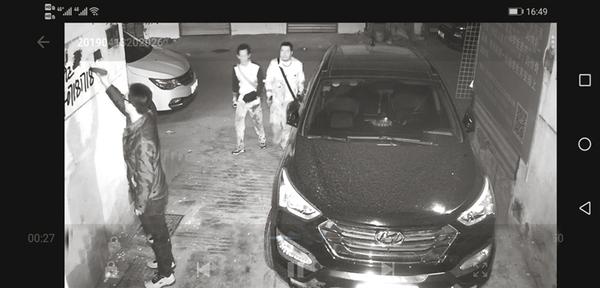 监控视频显示,4月13日3时21分,3名男子来到项城市仁和街一家属院门前,分别在墙上涂画小广告。