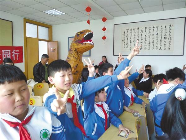 本报讯 4月9日至12日,周口几所校园里走进了特殊的“客人”:恐龙中的好莱坞明星——“霸王龙”,“霸王龙”每到一处,都受到周口报业小记者的热情欢迎。