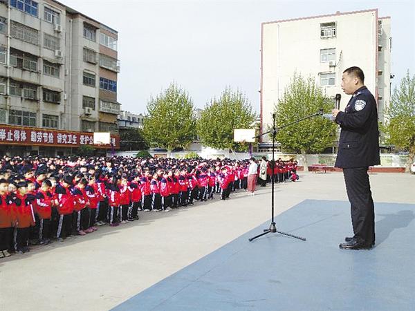 当天是我国全民国家安全教育日,市公安局七一路分局法制大队大队长薛征建面向该校3000余名师生,就保障学生健康成长、创建平安校园发出倡议:从一点一滴的安全行为做起,养成良好习惯,远离危险;今天做创建和谐校园的参与者,明天做和谐富强国家的建设者(如图)。