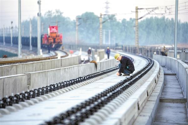 4月15日,中铁十二局集团的建设者在京雄城际铁路李营段施工。