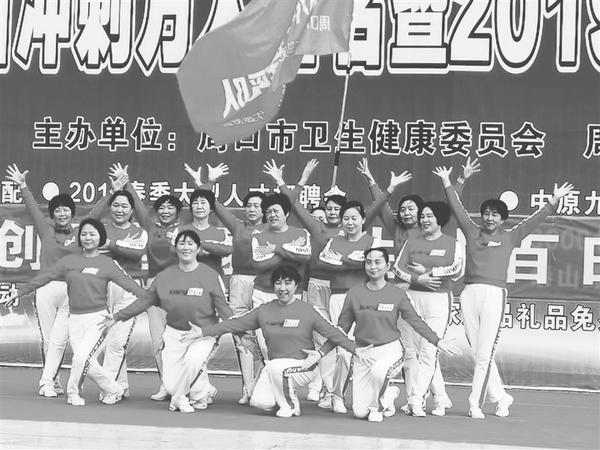 本报讯 4月19日上午,周口中心城区五一文化广场热闹异常。由周口市卫生健康委员会和周口报业传媒集团联合主办的周口“创卫”百日冲刺万人签名暨2019春季“建业杯”周口大型房展会在这里盛大开幕。开幕式上,来自周口市啄木鸟志愿者服务工作委员会的志愿者们以优美的舞姿、动听的歌声,表达对周口创建国家卫生城市的美好企盼。