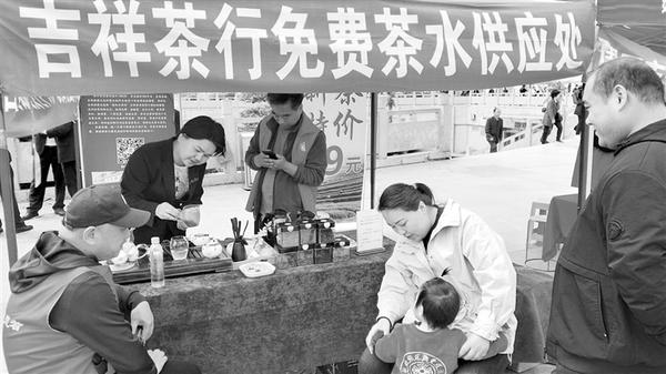 4月19日,在周口中心城区五一文化广场,记者注意到,有商家提供免费茶水,赢得了现场市民好评。记者 张洪涛 摄