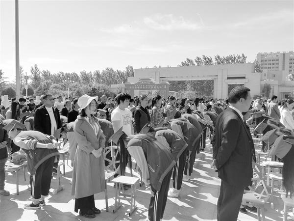 在活动现场,记者看到,周口市文昌中学的2000余名高二学生家长为自己的孩子戴上“成人帽”和“成人纪念章”,学生向父母行“拜谢礼”。随后,家长和学生手挽手步入“成人门”,走向许愿墙,许下各自的心愿。
