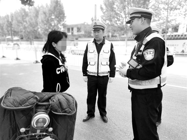 “同志,请靠边停下。”4月22日,在文昌大道与健康路交叉口附近,直属二大队民警拦下了一名骑电动车的女子,原因是该女子驾驶非机动车辆行驶在机动车道内。“您的这种行为违犯了相关法律法规,我们将对您处以20元的罚款。”民警对女子批评教育并处罚后,将其放行。