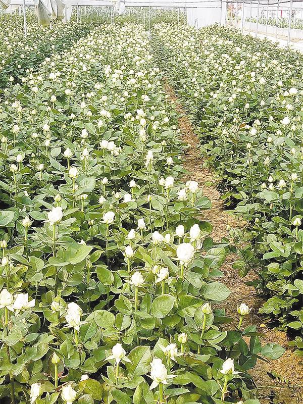 “香槟”玫瑰竞相盛开。记者 黄佳 摄