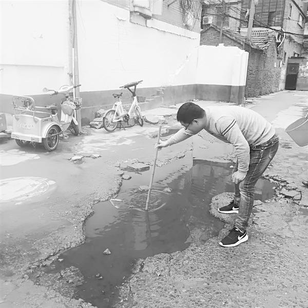 日前,全市“创卫”工作已进入关键阶段,但在中心城区七一东路北侧原油田家属院门口,一个2平方米左右的污水坑给这里的居民出行带来不便。附近居民徐先生说,这个污水坑有4厘米深,时时散发出恶臭气味,影响附近居民生活,希望有关部门重视起来。记者 滕永生 摄