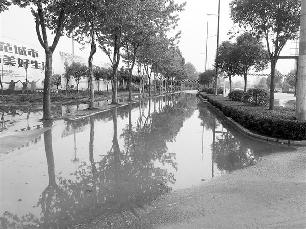 由于近日的降水,在五得利面粉厂对面的周口大道辅路上积存了大量雨水,行人无法通行,只能走快车道,存在很大安全隐患,希望有关部门尽早采取措施将积水排走。 记者 王凯 摄