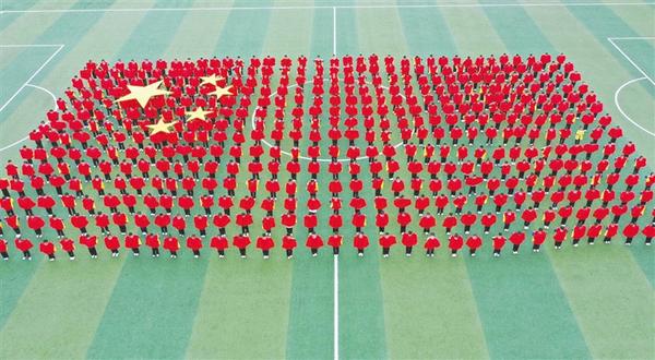 5月11日,扶沟县中小学校足球联赛暨中学生田径运动会在县秋实中学开幕。开幕式上,近4000名师生气势恢宏的大型团体操表演,展示了激情飞扬、活力四射的新时代精神风貌。图为县回族小学表演的《同在阳光下》团体操。
