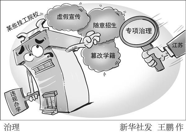 针对一些技工院校虚假宣传、随意招生、篡改学籍等违规办学问题,江苏近日开展专项治理。问题严重,尤其是隐情不报、不如实反映的技工院校,将被撤销各类支持,消减、取消招生计划,直至停办摘牌。