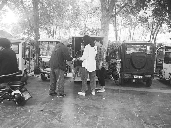 5月20日下午,在五一文化广场前的人行道上,一位70岁左右的老人正向一电动三轮车主收停车费。据市民反映,这里隔三岔五就会有人来收停车费,都是一些老人。市民李先生说,广场前的人行道是公共资源,不应成为个别人的敛财工具,前几天经过有关部门的治理没人收费了,这两天乱收费现象又卷土重来,希望有关部门加大治理力度,建立长效机制,防止反弹。 记者 黄佳 摄