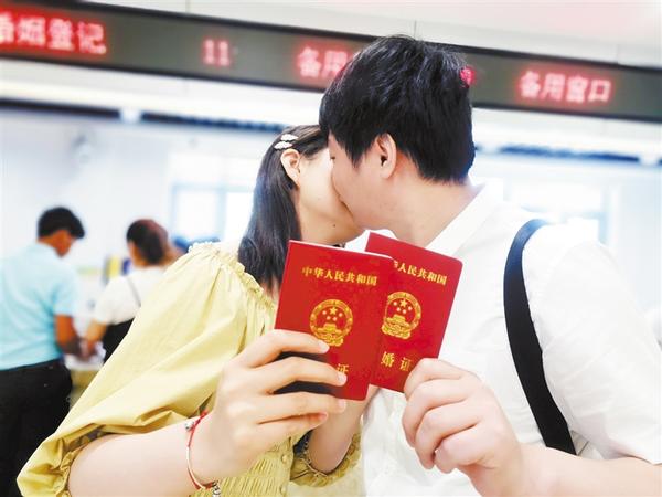 本报讯 5月20日,因与“我爱你”谐音,原本普通的一天在网络助推下,逐渐成为年轻人扎堆登记领证的好日子。据市民政局社会事务科相关负责人介绍,全市(不含鹿邑县)当日共有2042对新人登记领证。