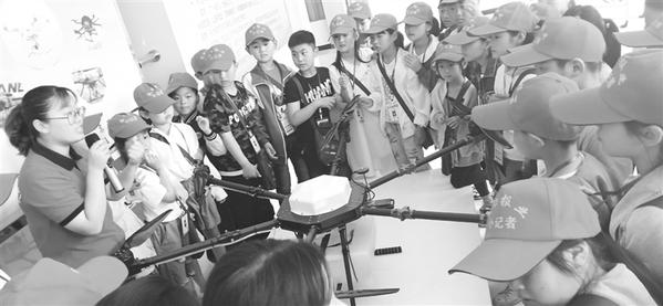 在现场,老师先给小记者们讲解了有关活动的内容,之后活动依次进行。第一站,我们走进无人机产业园展示大厅。一进大厅,就看到许多无人机,这些无人机功能齐全,有专门打农药的无人机,还有帮助警察叔叔的侦查无人机等,真是让我大开眼界。