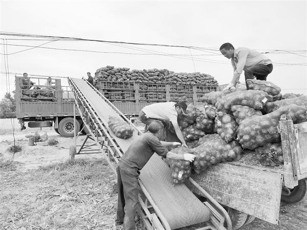 郸城县李楼乡扎实推进“六村共建”,助力乡村振兴,积极引导李楼、孔集、徐寨等行政村改变农业种植结构,种植特优品种洋葱千亩,目前正是收获季节,吸引了北京、杭州、上海、武汉、济南、兰州等地的客商前来采购。图为5月28日该乡种植的洋葱正在打包外运。