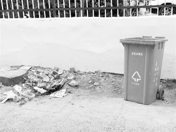 昨日,记者经过中心城区丁字街时发现,尽管该路段已摆放多个垃圾桶,但仍有人把垃圾倒在垃圾桶外,希望市民提高觉悟,改正不文明行为,为我市创建国家卫生城市作出贡献。 记者 张鲁莎 摄