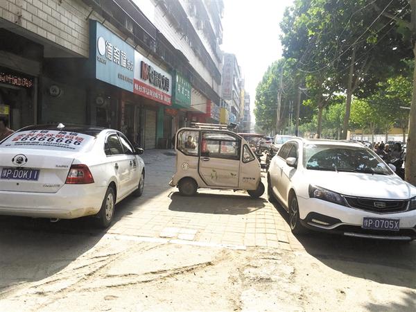 志愿者发现,八一大道至大庆路段的育新路环境卫生较好,车辆停放有序。而大庆路至建安路段的育新路则完全是另一番景象,环境卫生较差,车辆乱停乱放(上图),垃圾桶内垃圾清理不及时,周边的小区临街楼上各种补习班广告牌林立……在实验小学门前西侧,数个垃圾桶集中放在一起。在一些商店门前,地上垃圾遍地,饮料杯、垃圾袋、碎纸片、食品袋随处可见。除此之外,在人行道上,机动车、非机动车堵塞了整个人行道,还有不少车辆停在了机动车道上。“这个地方有学校,人流量大,环境卫生状况的确令人担忧啊。”一名志愿者说。在接近建安路时,志愿者发现两个紧邻的下水道堵塞,污水外流,气味难闻。一名环卫工人说,她在这里干了两个月了,这两个下水道经常堵塞。此外,在育新路和建安路交叉口处的一个街头游园内,志愿者发现这里没有设置垃圾桶,游园东南角的一个角落俨然成了露天公共厕所。