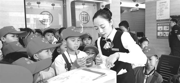 “小记者们,你们都陪着爸爸妈妈去过银行吗?知道银行有什么业务吗?你们的零花钱又是如何保管和使用呢?”刚进入银行不久,银行工作人员就向小记者们提出了不少身边常遇到的金融知识,而小记者们面对银行工作人员的提问,也纷纷给出了自己的答案。