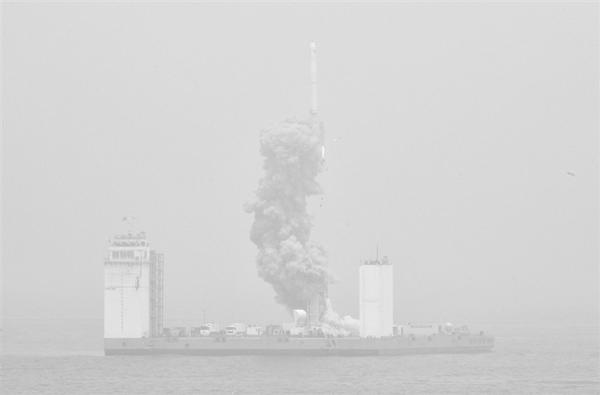 2019年6月5日12时6分,我国在黄海海域用长征十一号海射运载火箭,将技术试验卫星捕风一号A、B星及5颗商业卫星顺利送入预定轨道,试验取得成功。这是我国首次在海上实施运载火箭发射技术试验。 新华社记者 朱峥 摄