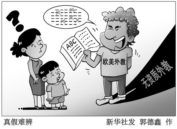 记者调查发现,与繁荣的市场、高昂的收费不相匹配的是,不少外教连基本的资质都不具备。新华社发 郭德鑫 作