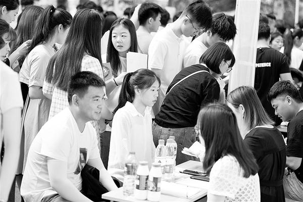 6月12日,毕业生在安徽亳州职业技术学院举行的“校园双选会”上求职应聘。