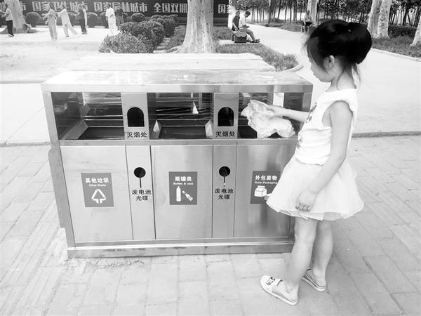 近日,国务院通过《中华人民共和国固体废物污染环境防治法(修订草案)》。昨日,记者在中心城区人民公园看到,我市的新型垃圾桶已经开始“工作”。新型垃圾桶与以往的垃圾桶区别在于对垃圾的分类更明确,对垃圾分类不了解的市民,可根据垃圾桶上的文字和图案投放垃圾。记者 刘昂 摄