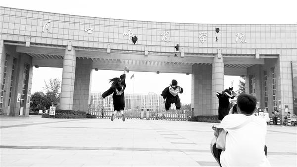 随着毕业季到来,6月13日,周口师范学院2016级数学系的3位女生在学校大门口拍照留念。记者 关秋丽 摄