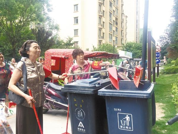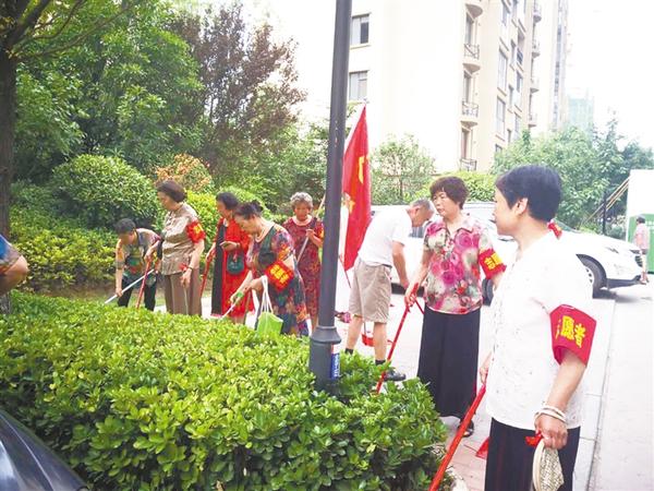 志愿者清理草坪上的垃圾。记者 黄佳 摄