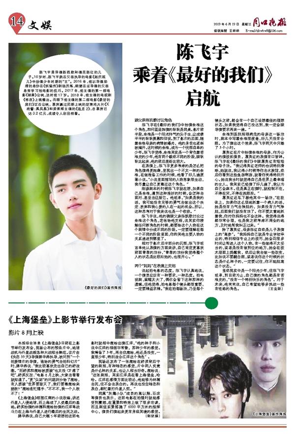 虽然现实中是一个阳光少年,但陈飞宇坦承,到目前为止,自己演的角色都是有苦难史的,“没有一个特别快乐的角色”。对于未来,他笑笑说,自己希望能够多挑战一些有性格的角色。(王金跃)