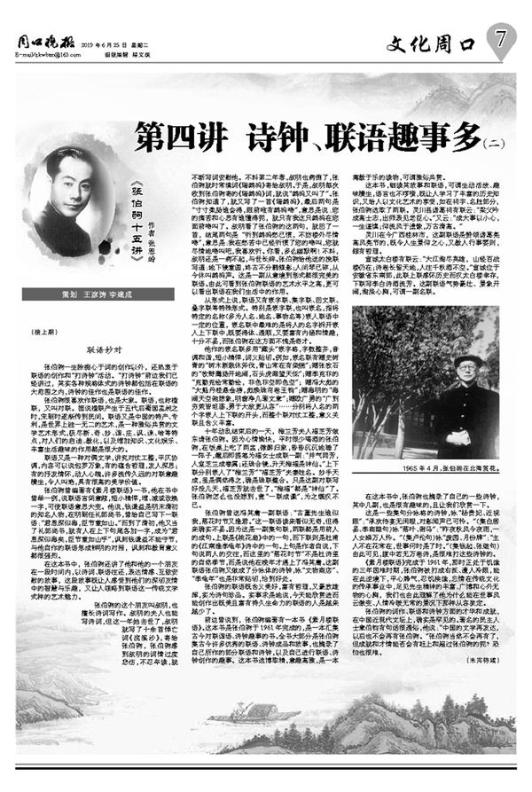 前边曾说到,张伯驹编著有一本书《素月楼联语》。这本书是张伯驹于1961年完成的,是一本汇集古今对联谐语、诗钟趣事的书。全书大部分是张伯驹集古今许多优秀的联语、诗钟成品和故事,也摘录了自己所作的部分联语和诗钟,以及自己进行联语、诗钟创作的趣事。这本书选博取精,意趣高雅,是一本寓教于乐的读物,可谓雅俗共赏。