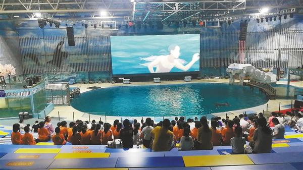 探索海底隧道,感受海底世界的惊喜,营员们在海底世界了解到多种生物,有白鲸、海豚、企鹅、海龟,营员们与吸奶鱼喂食互动,观看海豹表演。