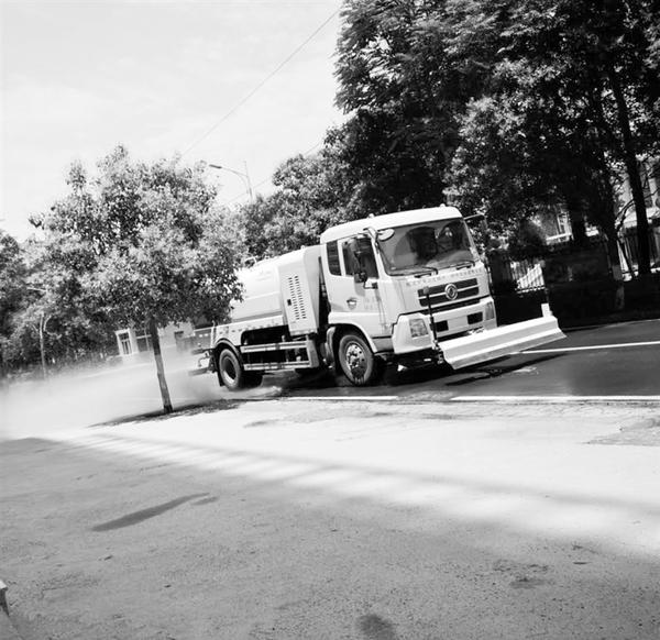 6月30日下午,我市调动洒水车20辆、雾炮车14辆、机扫车9辆,对中心城区主次干道进行清扫保洁、除尘降尘,做到路面不干、喷雾不停歇,确保空气质量向好发展。