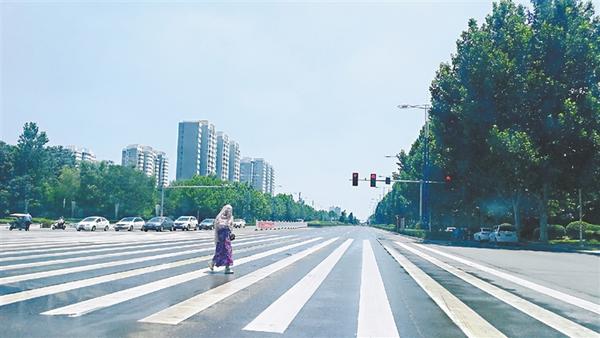 7月1日12时许,一位市民行走在周口师范学院门前文昌大道斑马线上。自开展“创卫”工作以来,中心城区面貌焕然一新,特别是道路交通秩序有了根本好转。