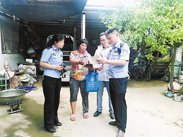 齐德生、王亚杰通过查找张瑞彬的原始户籍档案,并入村入户进行走访调查(如图),很快整理好相关材料并上报。随后,张廷阳积极与淮阳县公安局和周口市公安局的户政部门进行沟通,使得张瑞彬变更出生日期在最短时间内完成审批。考虑到张瑞彬行动不便,7月3日下午,民警来到张瑞彬家为其采集人像信息,申请办理身份证。