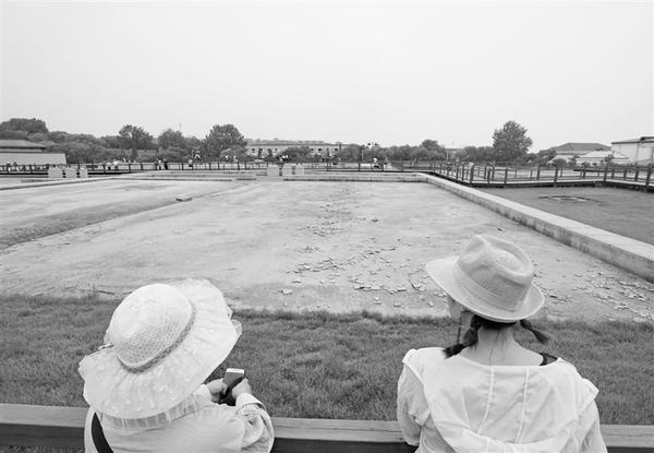 7月16日,游客在北戴河秦行宫遗址博物馆遗址保护区参观。