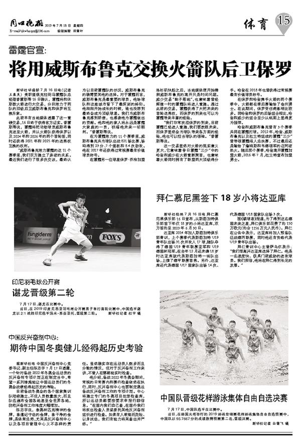 新华社华盛顿7月16日电(记者王集旻)美职篮俄克拉荷马雷霆队总经理普雷斯蒂16日确认,雷霆将和休斯敦火箭进行大交易,分别效力于两队的顶级后卫威斯布鲁克和保罗将互换东家。