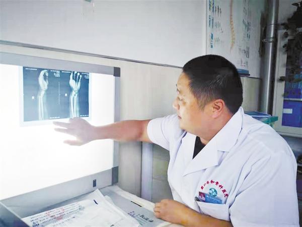 经检查发现,乐乐右肱骨髁上骨折。“当时,孩子胳膊已经成‘Z’字形,皮下淤血严重。为此,我们采用C臂透视引导下闭合复位经皮穿钉及石膏固定。经过治疗,孩子3天后出院。”刘涛说,闭合复位经皮穿钉技术以稀疏内固定、坚强外固定为特点,对儿童身体组织基本无损。周口协和骨科医院2017年引进的这项技术获得了2018年度周口市科技进步奖。