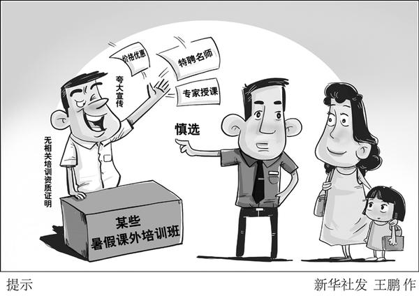 暑假期间,许多家长给孩子报课外培训班充实假期。然而不少家长却遇到培训机构没有办学资质、夸张宣传、退费难等问题。截至6月底,沈阳市消费者协会及12315指挥中心受理的课外教育培训类消费投诉已有95件。沈阳市消费者协会提示广大消费者,暑假报名参加课外培训班应科学理性。新华社发 王鹏 作